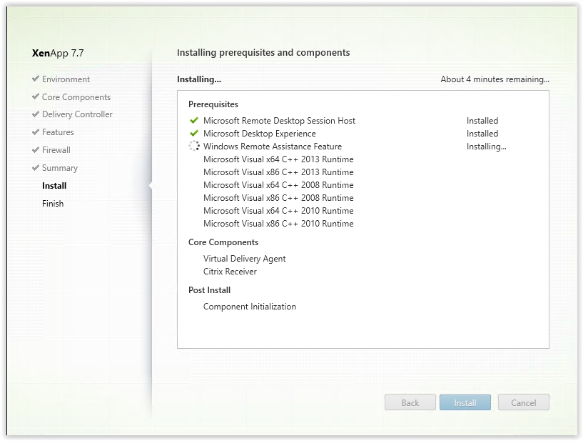 The Virtual Delivery Agent is installed automatically, including any missing prerequisites. The process takes about 5-10 minutes.